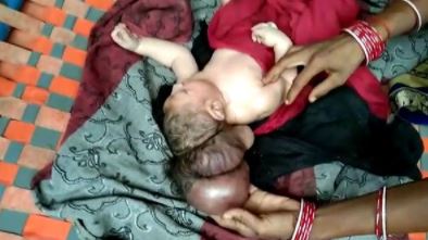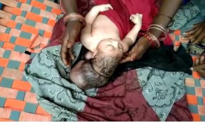 The mother named only as Ragini is understood to have been through a "normal" and healthy pregnancy which made the birth of a three-headed child all the more shocking.