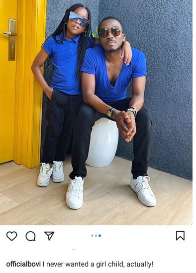 Popular Nigerian comedian, Bovi has revealed that he never wanted a female child.
