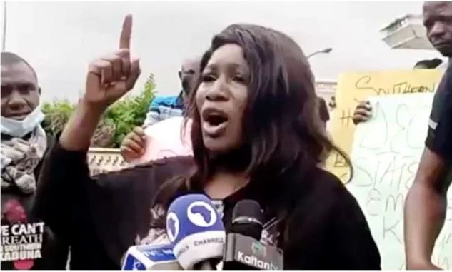 One of the youths Jane Thomas-Rogers during a protest about the killings in Kaduna on Saturday
