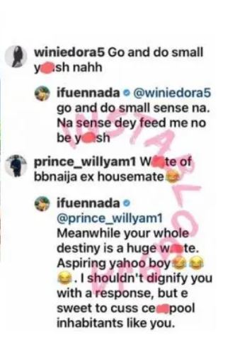 Another follower also drew her attention to a certain ex-housemate who recently underwent butt surgery, Ifu Ennada who didn’t welcome such a comment gave him an ugly lambast.