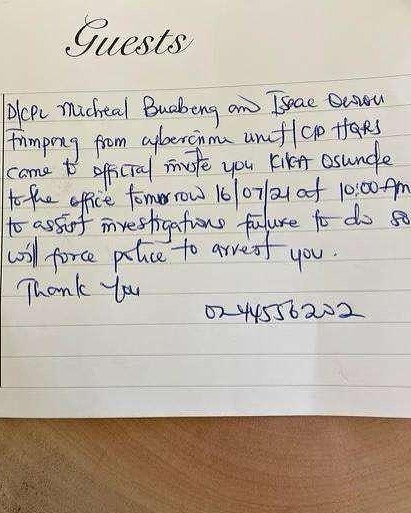 The family reported the case to the police, accusing her of publication of false news and threat to harm and Kika was invited to answer some questions but didn't show up.