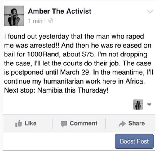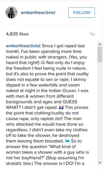 Activist, Amber Amour, who live blogged the harrowing details about her r*pe on social media minutes after the sexual assault has revealed why she was compelled to post the intimate details minutes after the attack.