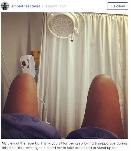 While in the exam room, Amber posted a photo of her rape kit while revealing that many people have blamed her for her rape because she agreed to shower with Sh*kir.