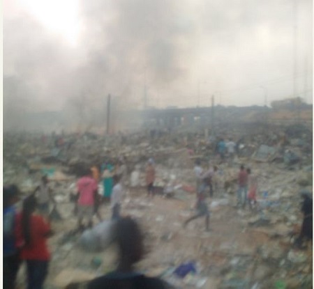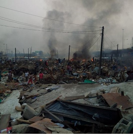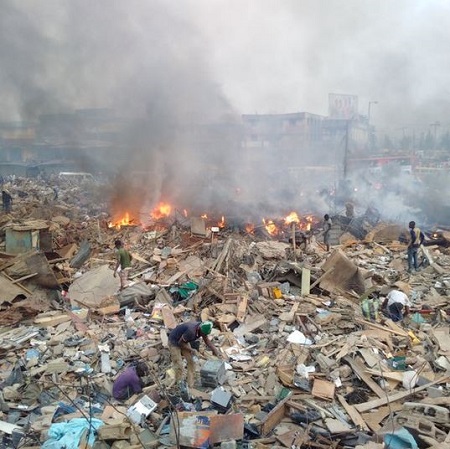 The demolition of the Oshodi electronics market in Lagos seems to have been completed by the Lagos state government with the remains set on fire.