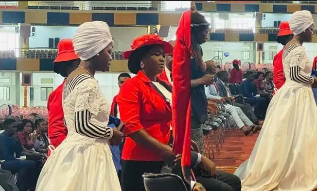 ”Woman in slide two got a leading from God (on her way from England to Nigeria) to wear a wedding dress in today’s service in order to get her marital breakthrough”