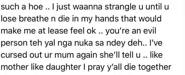 "I just wanna strangle you until you lose breath and die in my hands," Another message from the person reads.