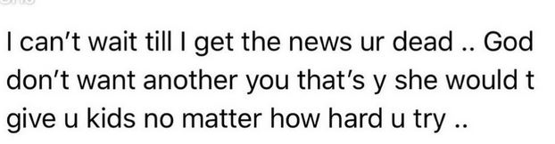 The person adds in the message that God doesn't want another person like Princess Shyngle in the world which is why God has refused to give the actress kids.