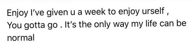 Another message reads: "You gotta go. It's the only way my life can be normal. "