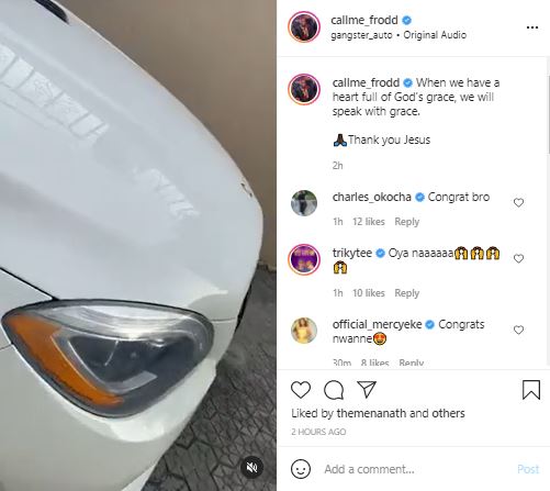 Nigerian reality star, Frodd has been left very excited after sharing a video of the brand new Mercedes Benz car he just acquired.