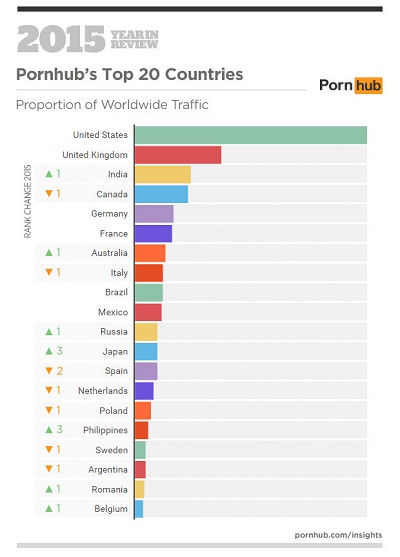 According to a new research released by PornHub, UK visitors accounted for more than 15% of traffic to world-renowned Pornhub in 2015. United States is ranked number one while the United Kingdom follows as the second in the list of perviest countries.