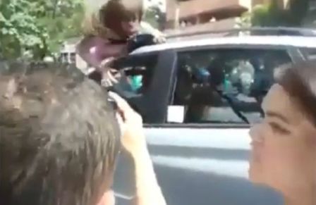 See the Dramatic Moment Angry Wife Dives into Car Window as She Catches Hubby with Another Woman