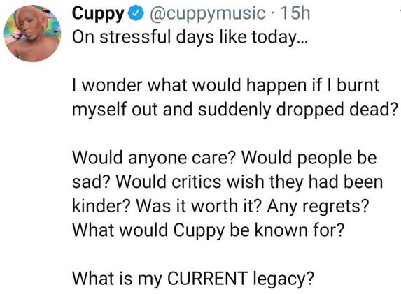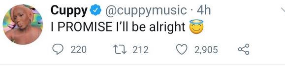 As her followers expressed concern, asking why she's talking about death, DJ Cuppy added: "I promise I'll be alright. "