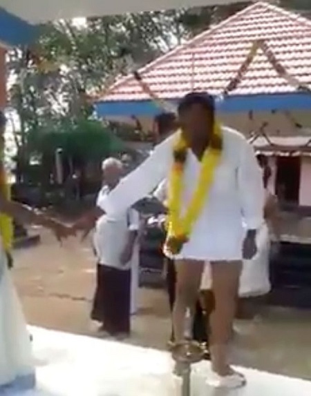The man was filmed wearing a veshti skirt, a traditional men's garment, worn in South Asia wrapped around the waist and secured only by a knot.