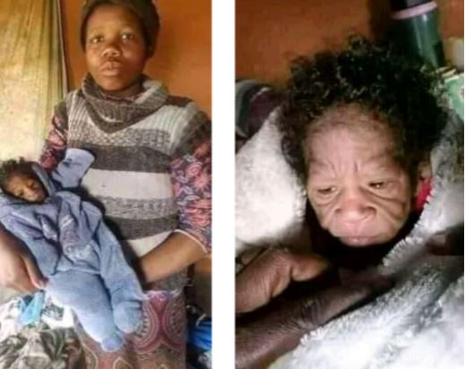 The South African woman gave birth to the baby with a rare condition called progeria, a progressive genetic disorder that causes children to age rapidly.
