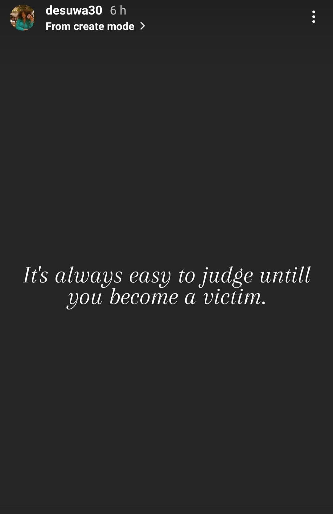 She said it's easy to judge people until we become victims.