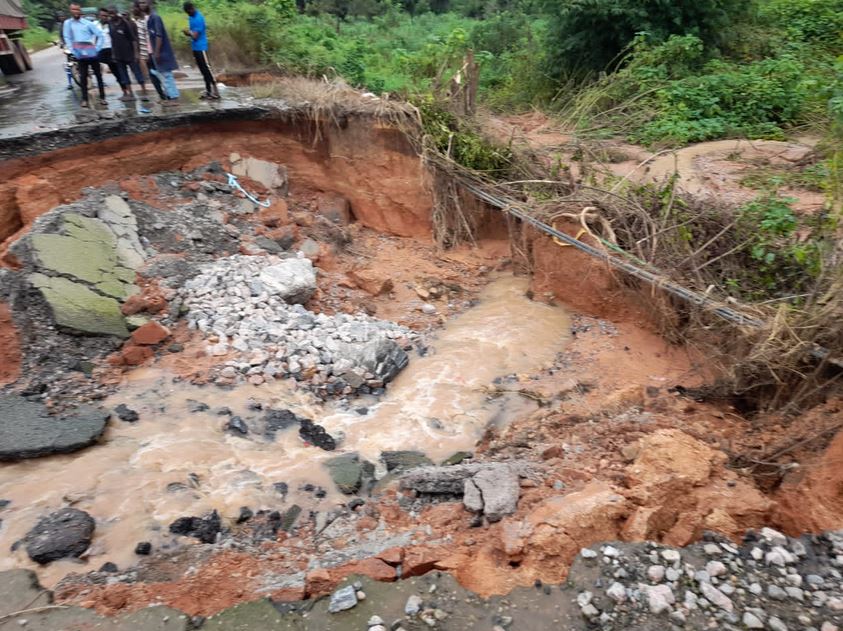 According to residents within the area, the road caved in due to flooding which was said to have been caused by hours of heavy rains.
