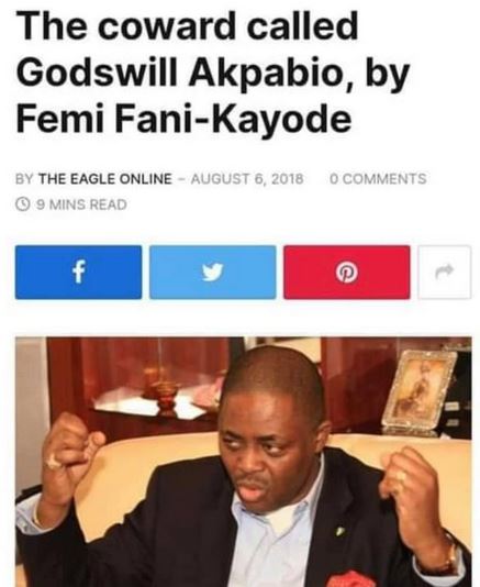 The 2018 report, shared by the Eagles Online claims Fani-Kayode had shredded the former governor after he dumped the Peoples Democratic Party (PDP) for the ruling party. The report stated that FFK had wriiten;