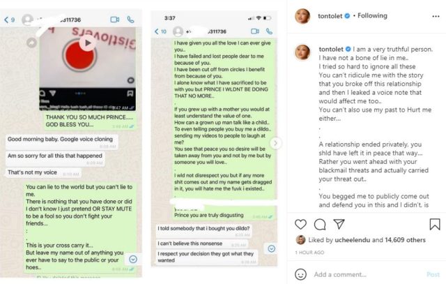 Tonto Dikeh has released interesting WhatsApp chat she had with estranged boyfriend Prince Kpokpogri.