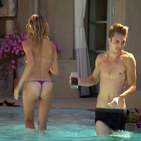 As the blonde bombshell sashayed out of the pool (topless and in a thong, because why the hell not?), the 23-year-old bent down and chomped her peach, prompting her to screech and desperately attempt to swat him away. James claimed that he was simply defending his masculinity, after the hottie slammed the size of his package in the fallout from their romp.