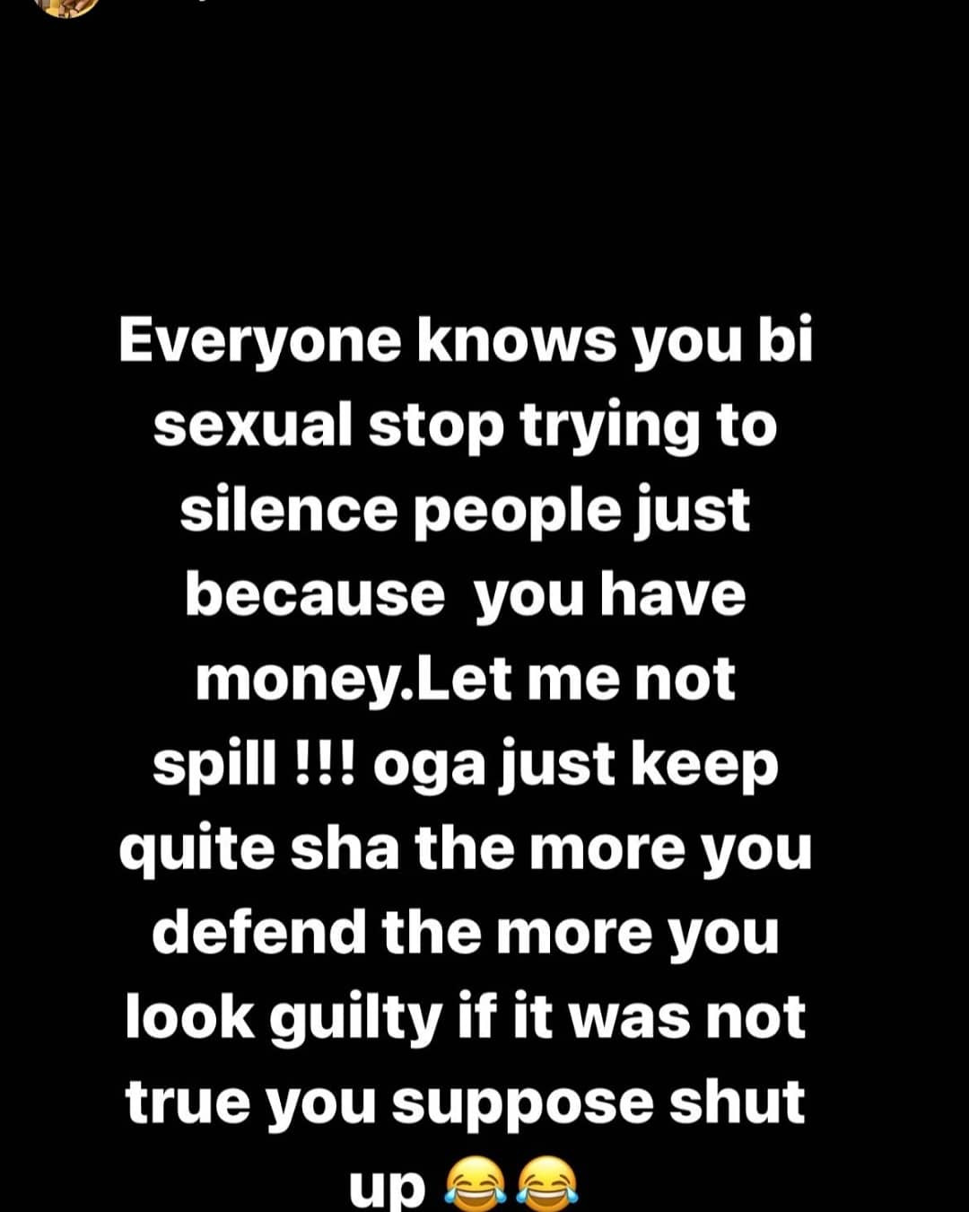 The singer added that the oga is "bisexual" and is trying to silence people because he has money.