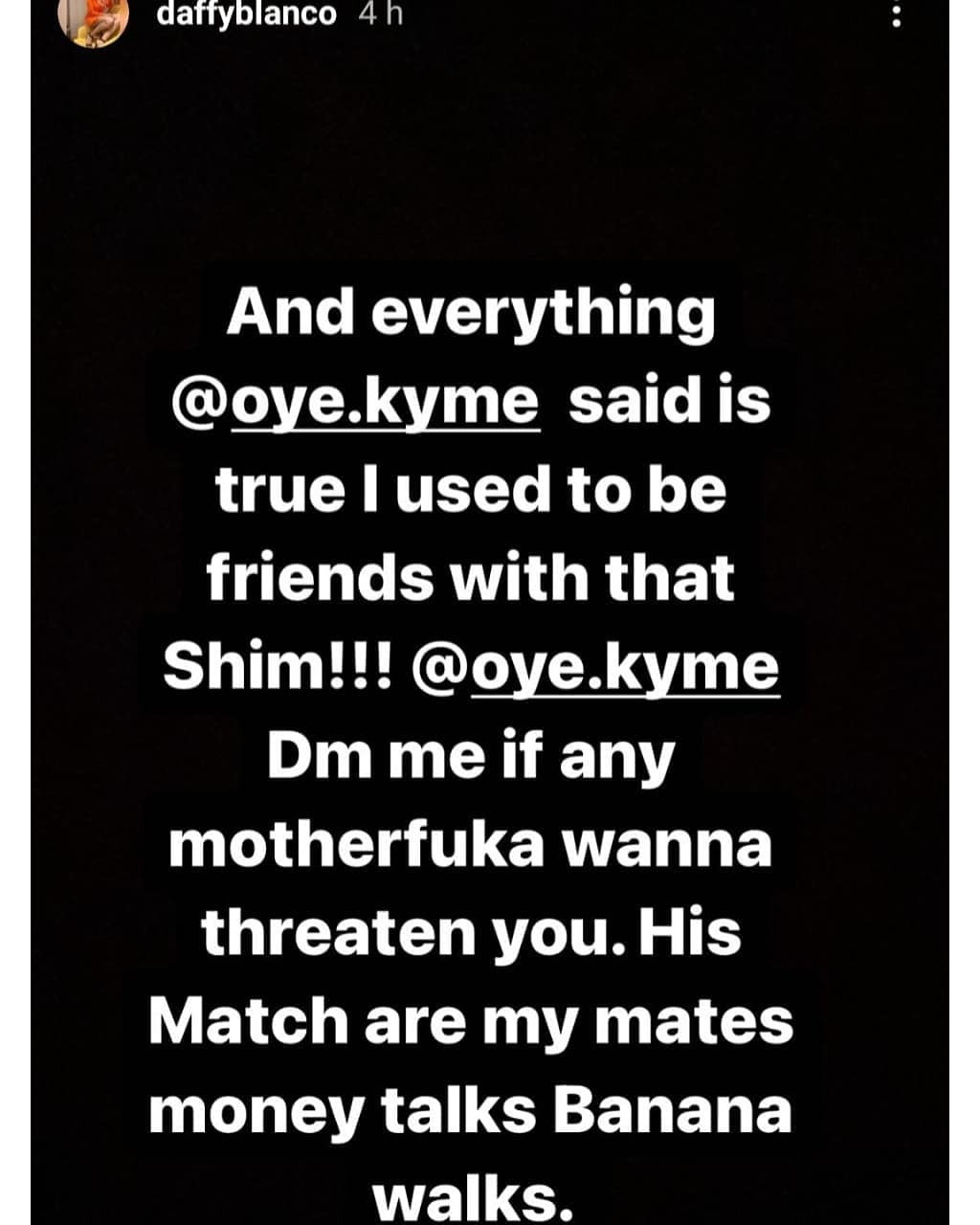 In her Instagram Stories, Daffy asked a certain "oga" to keep quiet because the more he defends himself, the more he looks guilty.