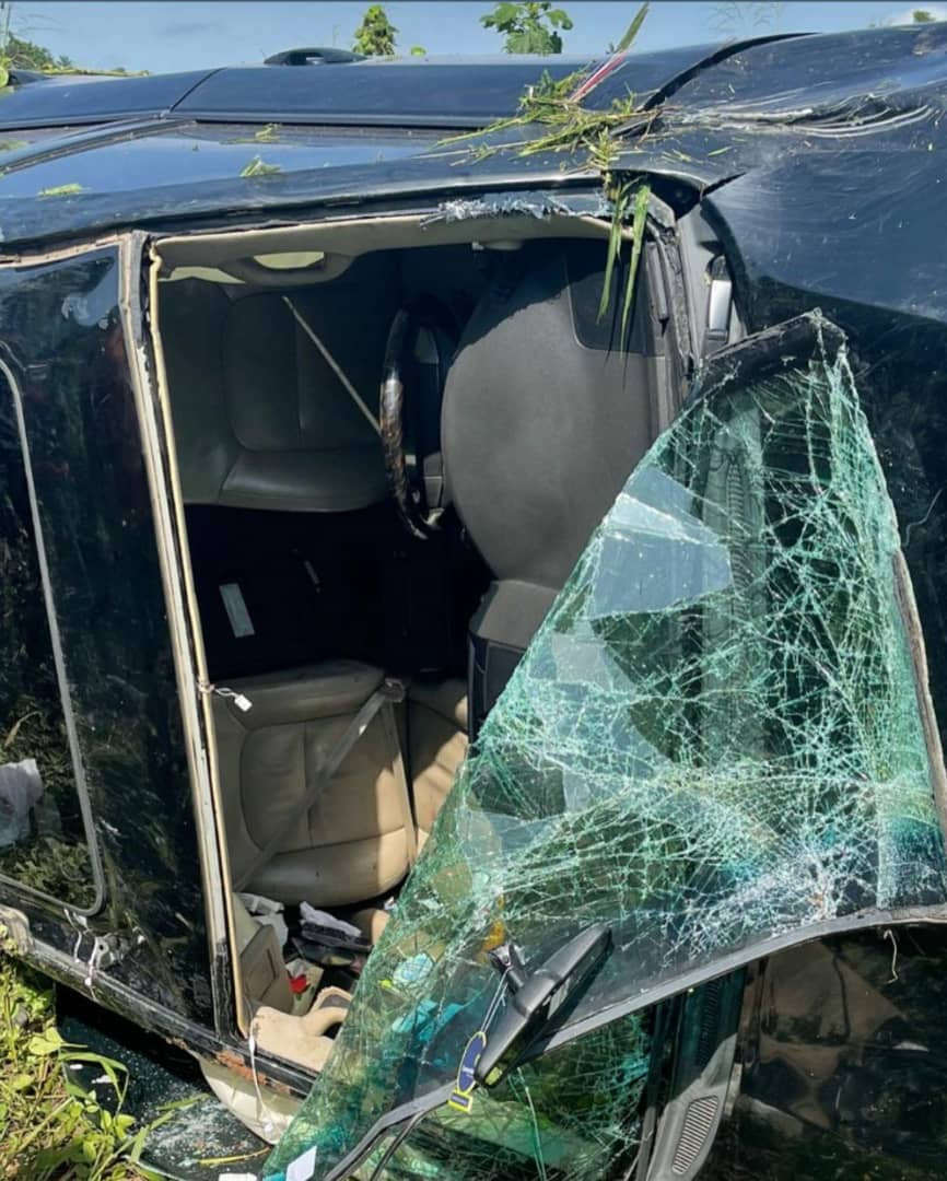 The singer's car somersaulted a couple of times, which caused the front windshield to pull off, and left his car in a complete wreck.