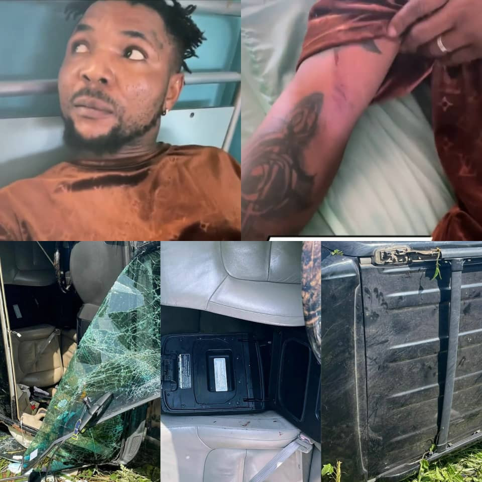 OritseFemi, the popular Nigerian singer, survived a ghastly motor accident in Sapaade, Ogun state today, September 26.