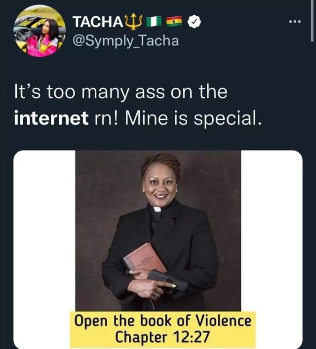 In response, Tacha stated that the trend of bum shaking on the internet has become so common that she decided to reserve hers.