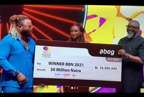 Big Brother Naija Shine Ya Eyes winner, WhiteMoney, has received his 30 Million Naira cheque.