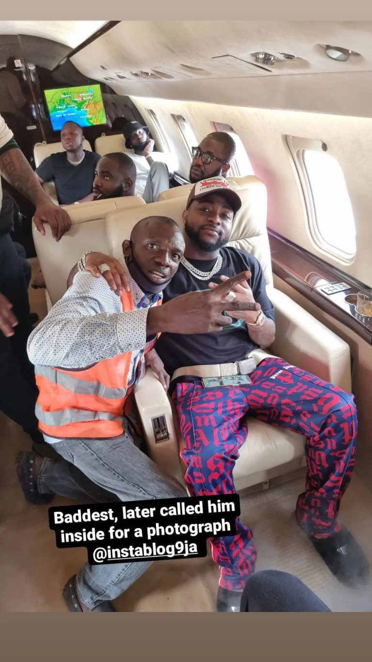 However, photos shared by Davido’s logistic manager, Isreal DMW, confirm that Davido settled with the official by taking him into his private jet for a selfie together.