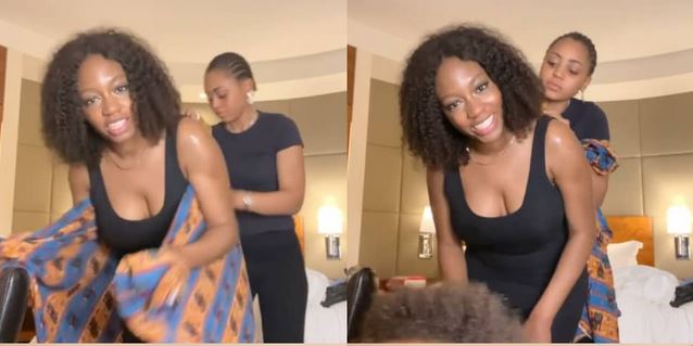 Former Big Brother Naija housemate, Khafi Kareem took to Instagram to share a video of Nollywood actress, Regina Daniels teaching her how to back her baby.