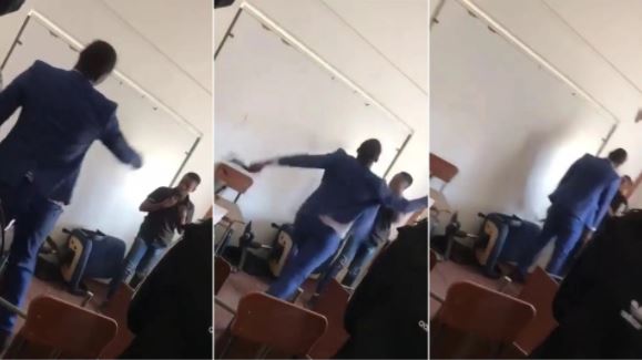 The teacher was seen slapping and wrestling with the student on the floor,before accusing him of disrespecting him.