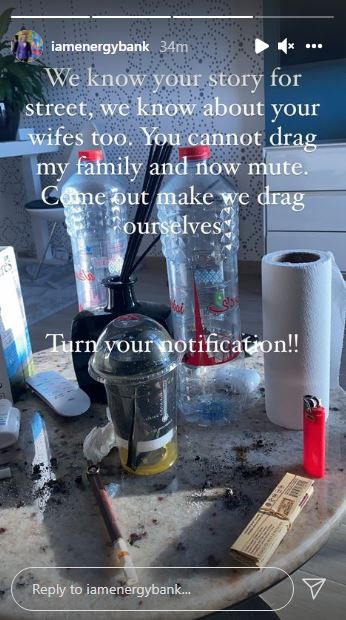 “We know your story for street, we know about your wives too. You cannot drag my family and now mute. Come out make we drag ourselves. Turn your notification!!”