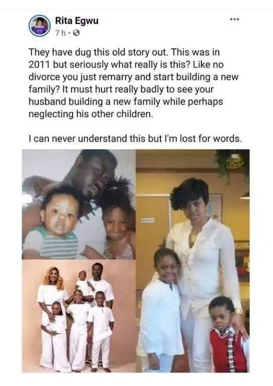 “This was in 2011 but seriously, what is this? Like no divorce you just remarry and start building a new family. It must hurt really badly to see your husband building a new family while perhaps neglecting his other children. I can never understand this but I’m lost for words”.