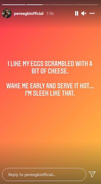It all started when the ex-See Gobbe housemate took to her Instastory to disclose that she’s falling for Pere Egbi of the just concluded Big Brother Naija show tagged ‘Shine Ya Eye’.