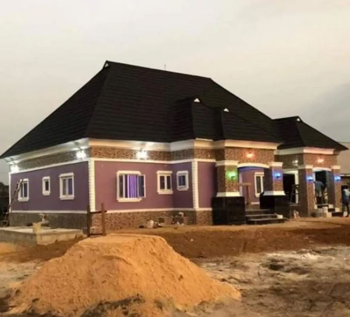 A social media user who shared the news, revealed that the man in question, bought a piece of land opposite his landlord’s house and built his new home in just two months.