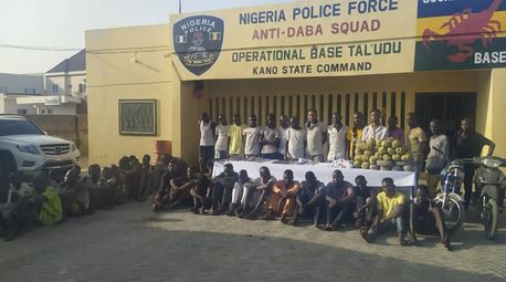 24 suspected illegal drug dealers and 35 criminals including an armed robbery gang known as Yan Daba have been apprehended by operatives of the Kano state police command.