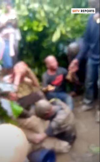 Another video shows a man standing on the back of one of the victims, whose head was placed on a tyre rim like he was being prepared to be slaughtered.