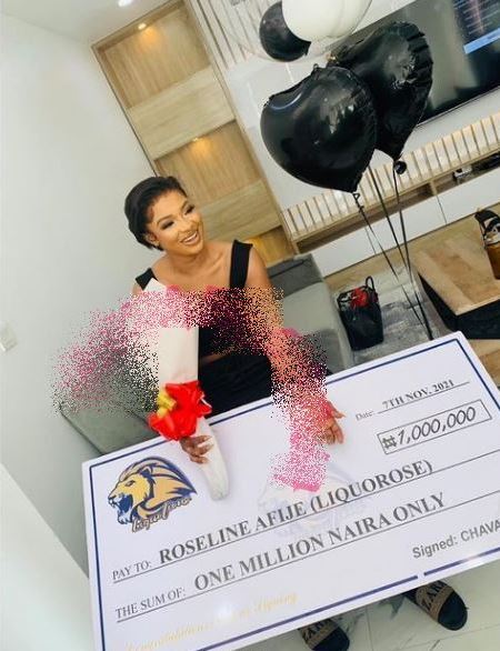 Fans of BBNaija finalist, Liquorose gave her the sum of one million naira alongside other items as she returned from South Africa.