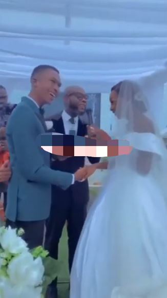 The groom who seems to have gotten emotional in the course of the wedding proceedings broke down in tears and this warranted a question from his bride.