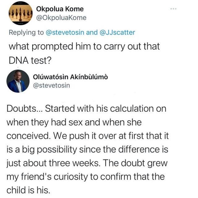 The man lamented that his friend noticed the miscalculation from when his wife got pregnant to when she gave birth to their son and went for DNA.