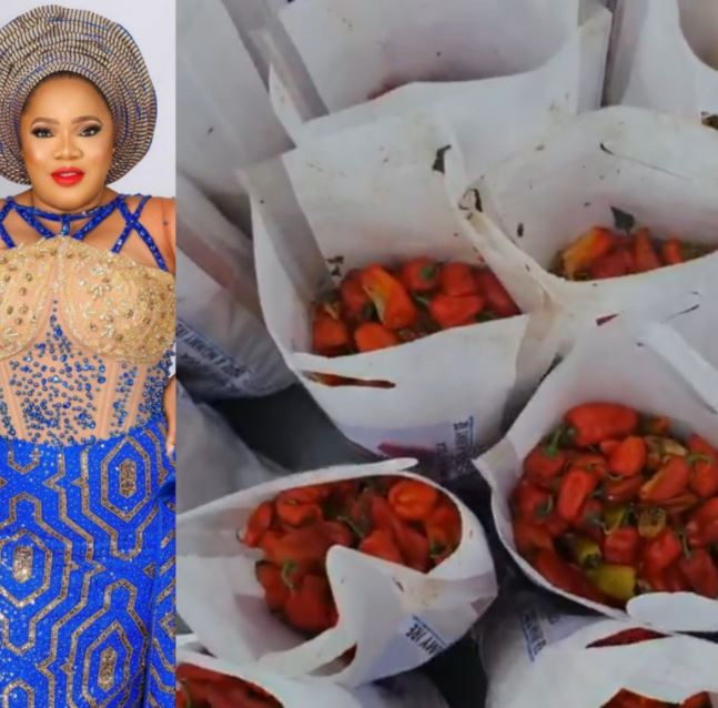 Nollywood actress and producer, Toyin Abraham shared red peppers at an event hosted by Iyabo Ojo on Sunday, November 21.