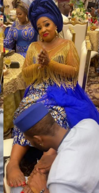 In the video taken at Iyabo Ojo's mother's one-year remembrance, Anita is seen sitting on a chair while her husband, better known as MC Fish, is seen bending to massage her feet.