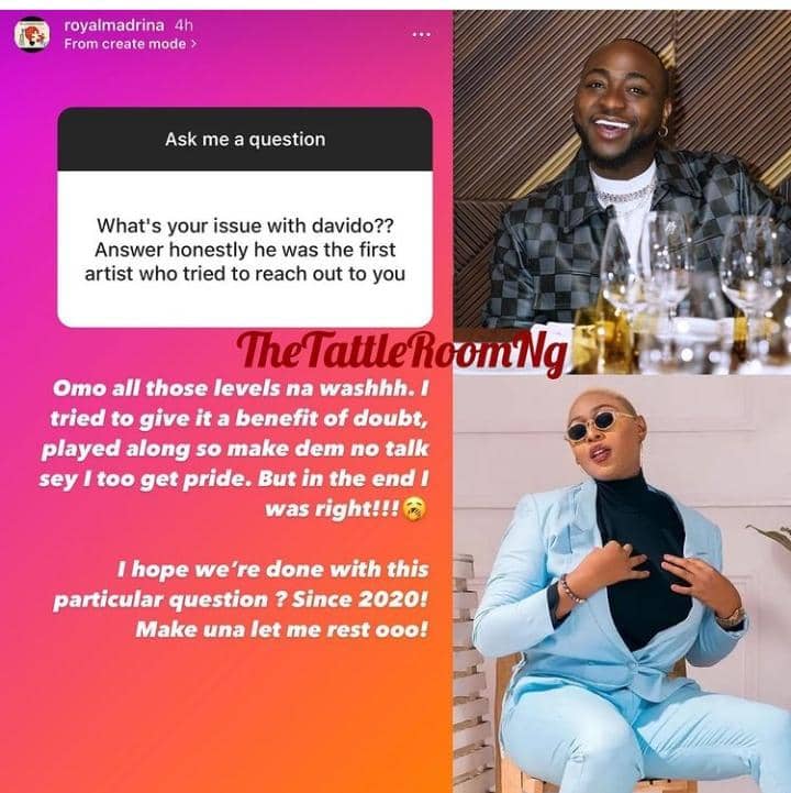 Davido had reached out to Cynthia Morgan on social media asking her to call him during her outburst after having issues with her then-manager and Jude Okoye.