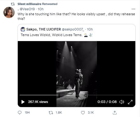 However, Wizkid fans have stepped in to defend their fave as they shared a video of Tems getting cozy with Wizkid on stage.