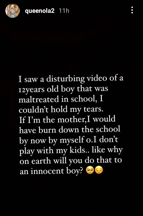 "If I'm the mother, I would have burn down the school by now by myself o. I don't play with my kids. Like why on earth will you do that to an innocent boy?" she added.
