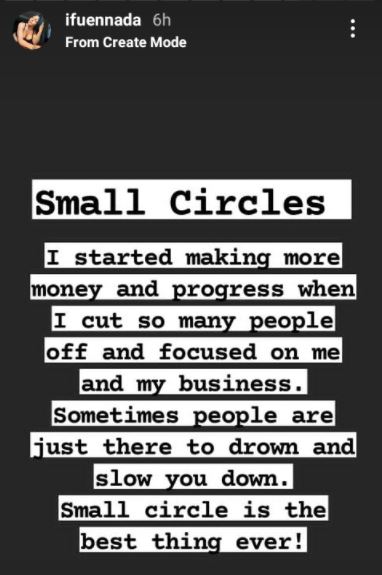 The entrepreneur who stated this via Instagram on Sunday, said that she started making more money and progress when she cut many people off from her life.