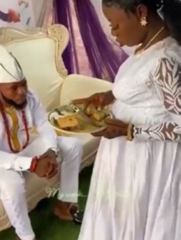 Outrage As Heavily Pregnant Bride Kneel To Feed Groom At Their Wedding