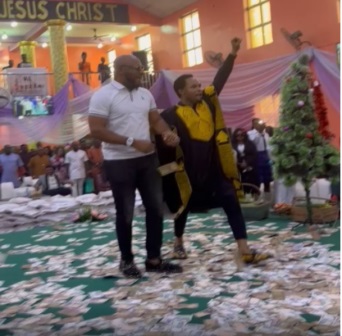 Nollywood actor, Yul Edochie and controversial prophet, Chukwuemeka Ohanaemere aka Odumeje have been sprayed millions by church members in Onitsha, Anambra State.