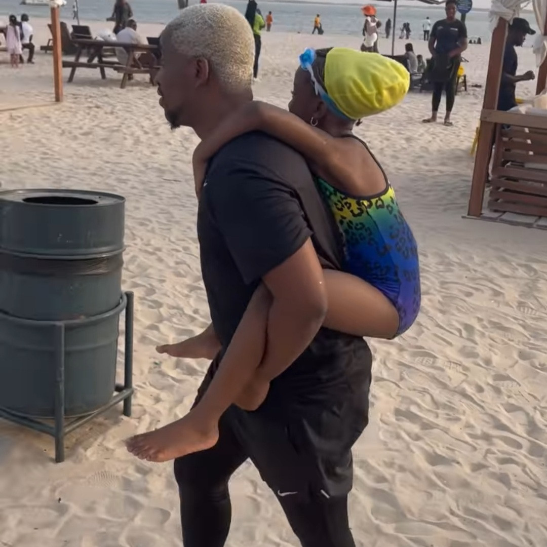 The man shared a video of him spending time at the beach with one of his daughters on his back.